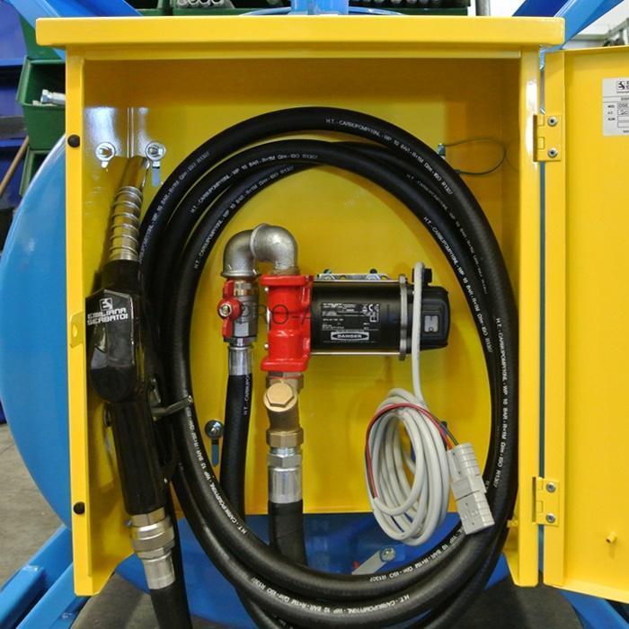 «Traspo 910, 12В, 40 л./мин.» с механическим пистолетом для заправки топлива и механическим счетчиком относится к категории горизонтальных топливораздаточных устройств. Это означает, что сама емкость вмонтирована в специальную металлическую раму горизонтальной осью. Целесообразно отметить, что в каталоге компании «Emiliana Serbatoi» имеется также ряд мини – заправочных станций с вертикальной осью. Однако, в отличие от вышеуказанной модели, вертикальные резервуары рассчитаны на заправочный объем в 250 и 450л.